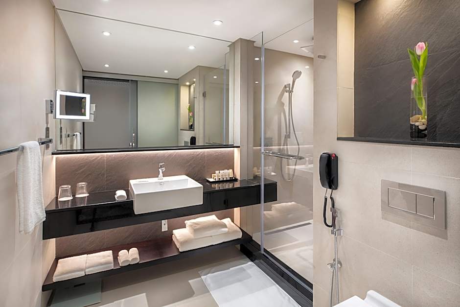 This 46 sqm suite with contemporary furnishing creates an elegant atmosphere with private lounge and dining area free internet tea and coffeemaker and free access to club lounge for daily breakfast, hi-tea and cocktail hours. Lounge access is excluded for any upgrades.